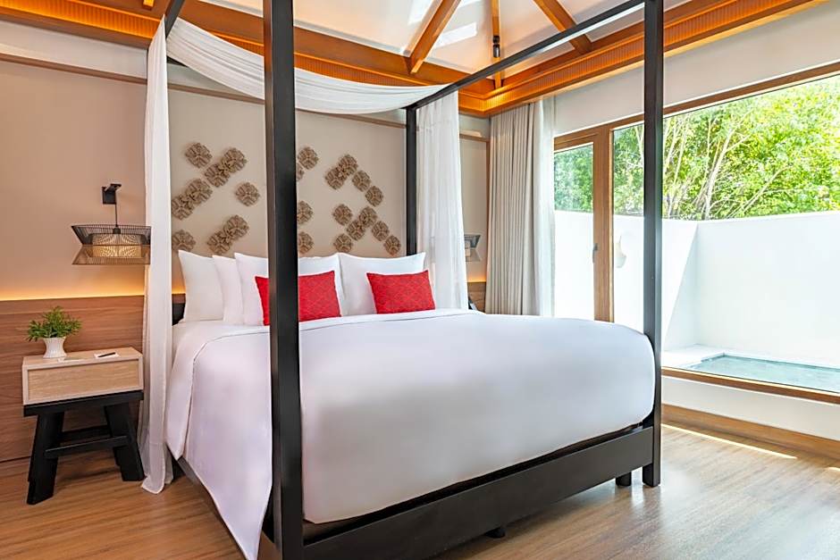 Offers exclusivity with a plunge pool, a dedicated villa host, and a spacious bathroom with twin vanities.