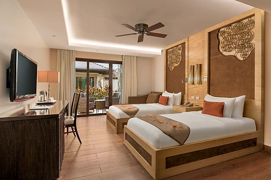 Features a balcony overlooking the garden and walkway, this room is equipped with a 42" LCD TV, a personal safe, and an open-plan bathroom with separate shower and tub. Each room also includes tea/coffee maker, a mini-bar, and an electric kettle.